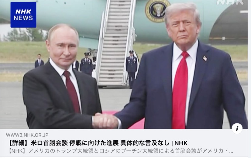 14日BBCは、アラスカ会談を前にプーチンが「トランプは戦争を終わらせるために努力している」と語ったと報じるが、閣僚らは怪訝な顔。詐病TACOトランプは「自分が大統領でなければプーチンはウクライナ全土を得ただろう。だがそうは出来ない」と自慢だけの妄言。