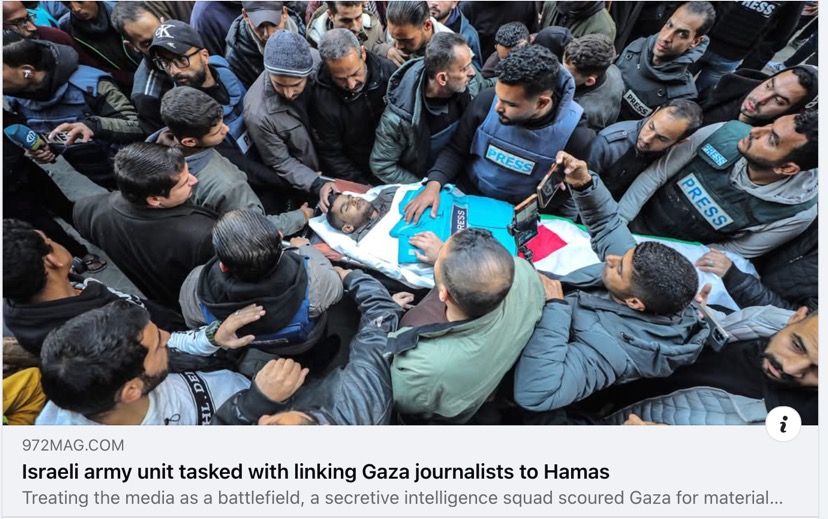 アルジャジーラは続報で、イスラエル軍情報部門が10/7以来ガザで全ての著名人とジャーナリストを探し出し、彼らを殺害するための口実探しを組織的に行なっている。パレスチナの抵抗グループのいずれかと関係があると作り出す専門グループも存在すると。逆にイスラエルの調査報道で、イスラエルのジャーナリスト全員が元兵士と指摘とも。第二次世界大戦で亡くなったジャーナリストを遥かに凌ぐ圧倒的な記者殺害を続けるネタニヤフたち。これを放置して、世界に明日はない。