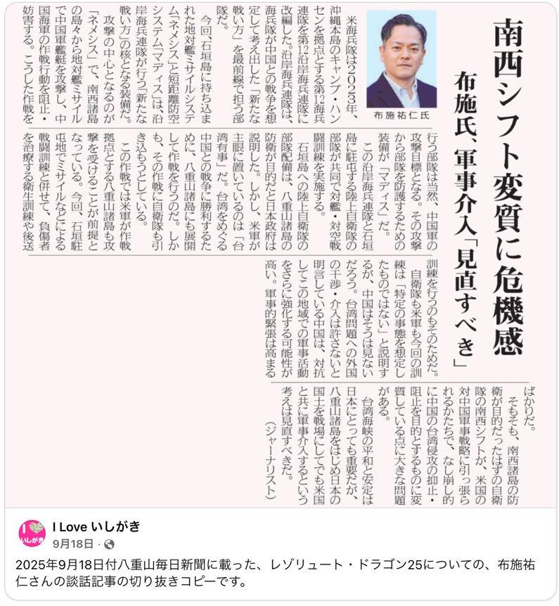南西諸島シフト」変質についての布施祐仁氏の鋭い指摘。