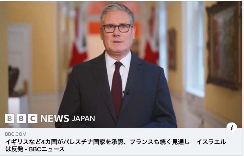 ・21日、カナダ、オーストラリアに続き英国もパレスチナを国家として正式承認すると発表。22日にはフランスもこれに続く見通し。 ・すでに世界では150カ国以上が承認。西欧では昨年スペイン、アイルランド、ノルウェーがパレスチナを承認する以前から、スウェーデン、キプロス、ハンガリー、チェコ、ポーランド、スロバキア、ルーマニア、ブルガリアが国家承認している。 ・日本政府はパレスチナを国家として承認することを当面、見送る。22日に米ニューヨークで開かれるパレスチナ問題をめぐる国際会議には、石破茂首相は出席しない見通し。 「平和と二国家解決への希望を再生するため、本日イギリスはパレスチナ国家を正式に承認します」スターマー首相 「カナダは本日パレスチナ国家を承認し、パレスチナ国家とイスラエル国家の双方に平和な未来を築くための協力を申し出る」カーニー首相 「2025年9月21日をもってオーストラリア連邦は、独立した主権国家のパレスチナ国家を全面的に承認する。これによってオーストラリアは、パレスチナの人々が自分たちの国家を持つという長年の正当な抱負を、承認する」アルバニージー首相 「パレスチナ国家が、イスラエル国家と安全、平和、そして良好な隣人関係のもとで共存する道を切り開く助けとなる」パレスチナ自治政府マフムード・アッバス議長 「イギリスがパレスチナ国家を承認すべきかという問いは、そもそも問題ではない。なぜイギリスはこれまでずっとパレスチナ国家を承認してこなかったのか、それこそが問われるべきだ」パレスチナ自治政府のフサム・ゾムロット駐英代表 「パレスチナ国家は実現しない。明確なメッセージがある。あなた方はテロに対して大きな報酬を与えている」戦争犯罪人ネタニヤフ 英国は第一次大戦時パレスチナを国連委任統治領とし、サイクス=ピコ協定(1916)では 英・仏・露による中東地域の分割管理 を取り決めながら、バルフォア宣言(1917)で西欧で長らく迫害してきたユダヤ人の国家を、既に定住する人々がいるパレスチナに建設させるという勝手な約束をし、ユダヤ人のパレスチナ移住を進めた。 イスラエルは1948年建国宣言し、英国は直ちに承認しながら、パレスチナの独立宣言(1988)は長らく放置してきた。日本も含め、G7を称する国々のその偏った姿勢が、イスラエルのパレスチナ(ガザ、ヨルダン川西岸)侵略を許容してきた大きな要因。 遅すぎるとはいえ、ガザで住民への殺戮を続けてヨルダン川西岸への不法入植そしてその併合さえ唱え出したネタニヤフらをICCが戦争犯罪容疑で指名手配し、国連人権理事会がイスラエルの行為をジェノサイド条約への重大な侵害と認定する今、パレスチナ人の主権と権利を擁護することは、国連加盟国すべての義務でもある。 そのイスラエルを支える唯一の国が、bone spur骨棘TACO詐病トランプが君臨する米国。この国の石破自公政権は、核禁条約と同じようにパレスチナ国家承認を、米国の小判鮫よろしく迎合して口先だけの後ろ向きで過ごす醜態。日本もパレスチナに対するジェノサイドの共犯者になるつもりなのか。 《イギリスのキア・スターマー首相は21日、パレスチナ国家を承認すると発表した。これに先立ち、カナダとオーストラリアもパレスチナ国家の正式な承認を表明。その後、ポルトガルも承認を明らかにした。22日にはフランスもこれに続く見通しだ。 カナダとオーストラリア、イギリスはかねて、承認の方針を示していた。パレスチナとイスラエルの間の中東和平問題解決を目指す2国家解決策の推進に向けて、3カ国で協力体制を組む意向という。 承認に対しては、イスラエル政府や、ガザ地区で拘束されている人質の家族、一部の英野党議員が激しく批判している。イスラエルのベンヤミン・ネタニヤフ首相は21日、「パレスチナ国家は実現しない」と述べた。 ネタニヤフ首相は、国家承認を表明した各国の指導者に対して「明確なメッセージがある」と述べたうえで、「あなた方はテロに対して大きな報酬を与えている」と語った。 イスラエルと同盟国のアメリカは、パレスチナ国家の承認は、2023年10月7日にイスラエル南部を攻撃したパレスチナ・ガザ地区のイスラム組織ハマスに対する、外交的な「報酬」だと主張している。この攻撃では1200人が殺害され、251人が人質として拘束された。 イスラエル外務省は、パレスチナ国家は「イスラム聖戦主義のハマスに対する報酬にすぎない」と非難。「ハマスはイギリスに拠点を持つムスリム同胞団の支援を受けて勢いづいている」とした。 一方、ヨルダン川西岸地区を統治するパレスチナ自治政府のマフムード・アッバス議長は、スターマー首相が同議長宛ての書簡で表明した決定を歓迎、「パレスチナ国家が、イスラエル国家と安全、平和、そして良好な隣人関係のもとで共存する道を切り開く助けとなる」と述べた。 パレスチナ国家は現在、国連加盟193カ国のうち約75パーセントの国によって承認さ